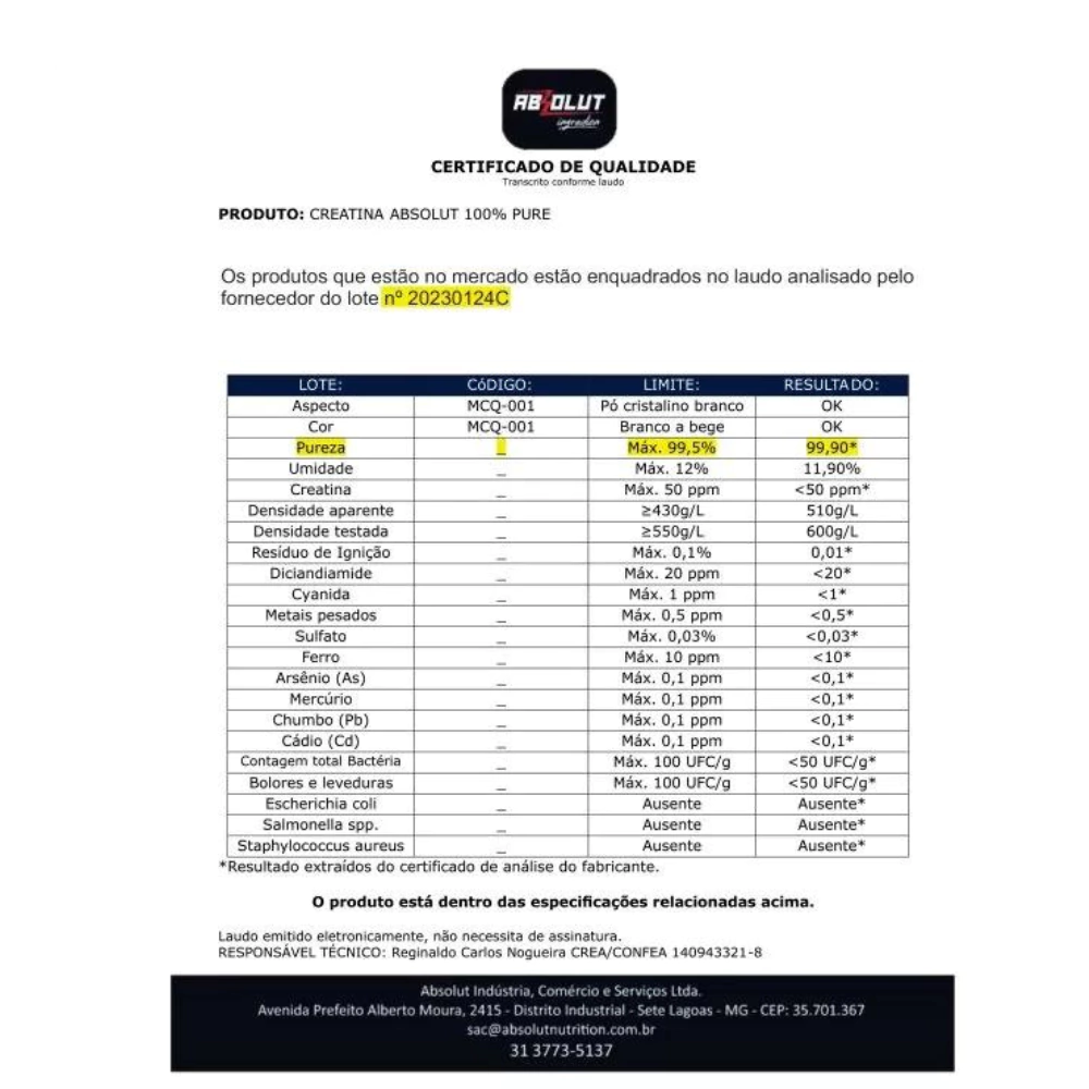 Os principais benefícios da creatina monohidratada é o aumento de força, diminuição de fadiga muscular, ganho de massa muscular, concentração e foco. Para os atletas e praticantes de esporte, ela atua, principalmente, para aumentar a massa muscular de modo sadio. A Creatina é um composto produzido naturalmente no nosso organismo como um repositor de energia. Ela é produzida no fígado, rins e no pâncreas, e secretada no fluxo sanguíneo para ser transportada até o tecido muscular. Ela é formado pelos aminoácidos arginina, metionina e glicina, seu uso recomendado é de 3g diárias, favor consultar seu médico e nutricionista quanto ao uso.
