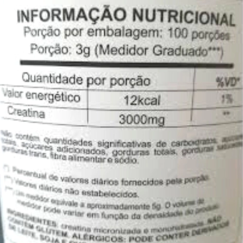 Ingredientes: Creatina Micronizada e Monohidratada.