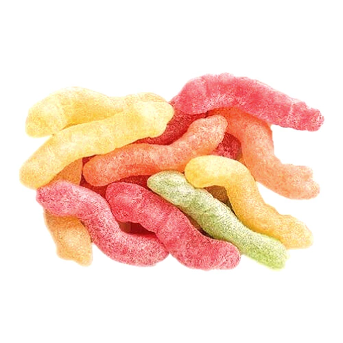 Quem nunca foi criança né, é mesmo uma delicia as balas de goma em formato de minhocas azedinhas. Esta bala é para a criançada e os amantes da infância! Simpáticas e azedinhas, as minhocas são de morango, uva, tangerina, abacaxi e limão.