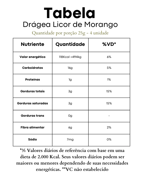 Drágea é simplesmente muito gostosa e essa delícia se dá muito bem com a vontade de comer oleaginosas ou frutas, licores, com uma fantástica cobertura de chocolate e cacau, e vai deixar aquele gostinho de quero mais, nossas drágeas com chocolate 70%, meio amargo, ao leite e zero açúcar, é de produtores do Paraná, produzidos de forma quase artesanalmente e com ingredientes selecionados e inspecionados mantendo um alto padrão de qualidade, um verdadeiro show visual e um sabor invejável e equilibrado, nesta versão com lícor de morango gourmet, vai fazer da primeira mordida até a última um ato inesquecível.