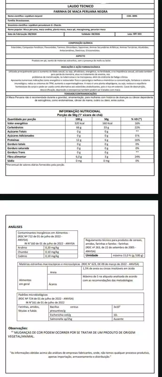 COMPOSIÇÃO: Maca Peruana Negra em pó.