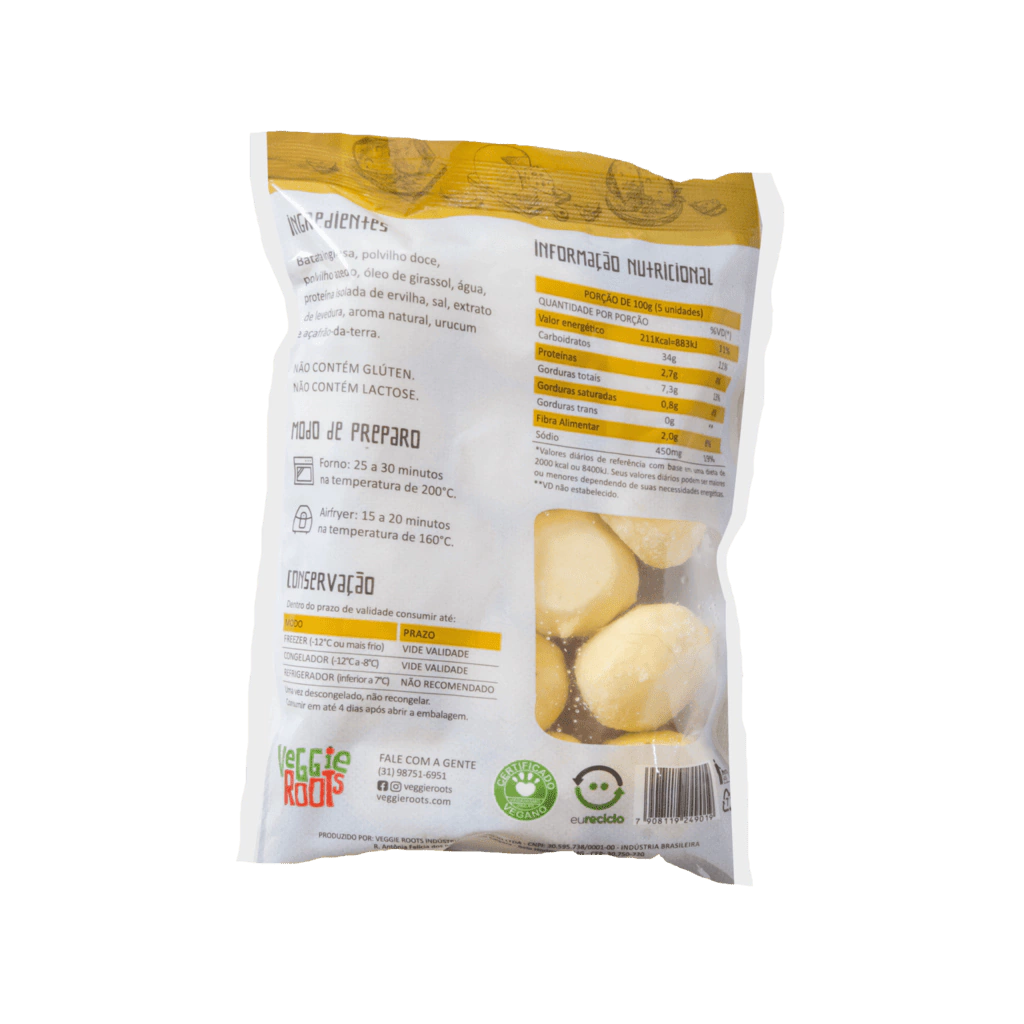 O Pão de Queijo Clássico Veggie Roots 300g é uma alternativa inteligente e saborosa para quem busca desfrutar do sabor tradicional do pão de queijo, mas em uma versão 100% à base de plantas. Este produto oferece a experiência completa de um pão de queijo quentinho, com a conveniência e os benefícios de ser livre de ingredientes de origem animal.