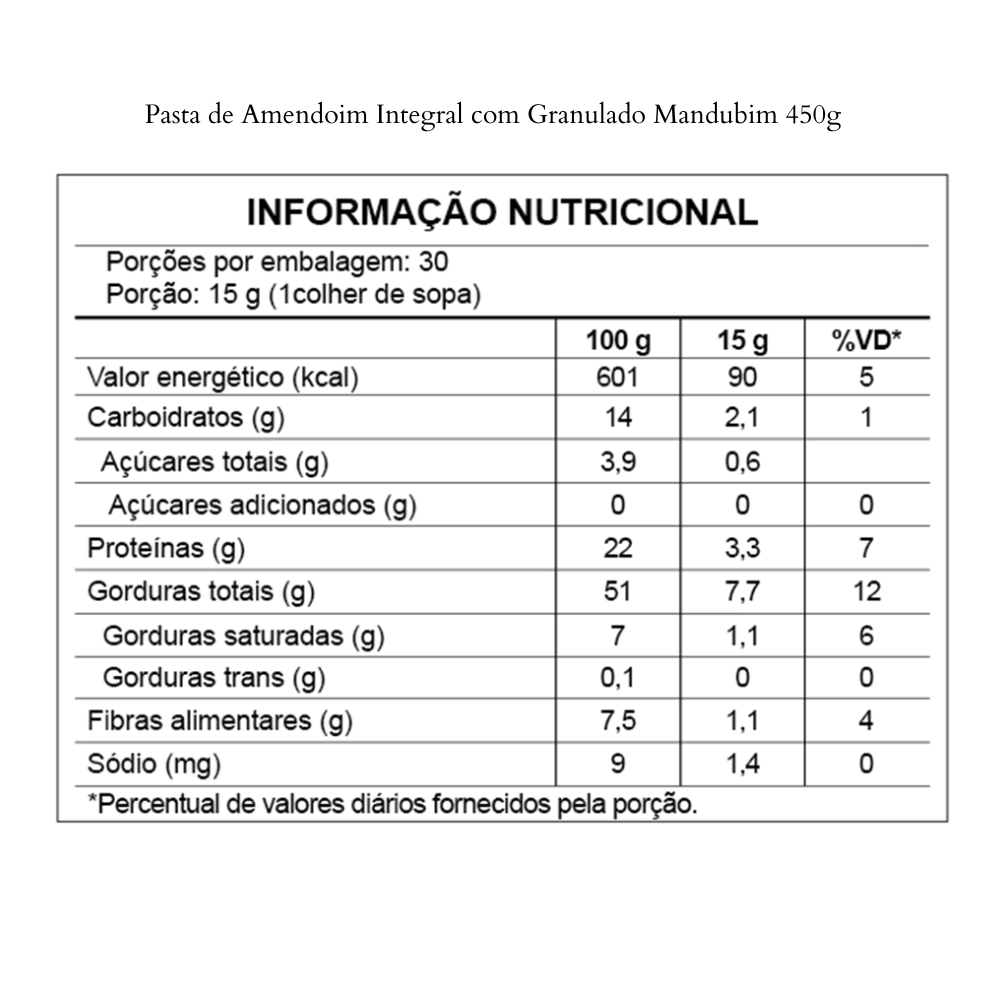 A Pasta de Amendoim Gianduia Mandubim 450g é uma combinação saborosa de pasta de amendoim com o delicioso sabor da gianduia (creme de chocolate e avelã).