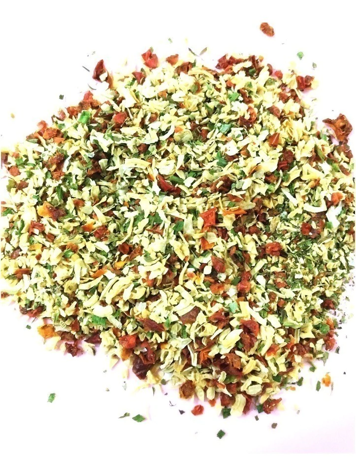 O vinagrete em flocos conta com flocos desidratados de cebola, alho, pimentão e tomate, ingredientes comuns em um vinagrete. Esse mix pode dar um sabor diferenciado aos alimentos. O principal benefício que o vinagrete em flocos pode oferecer é a versatilidade na cozinha e na preparação de pratos como saladas e petiscos.