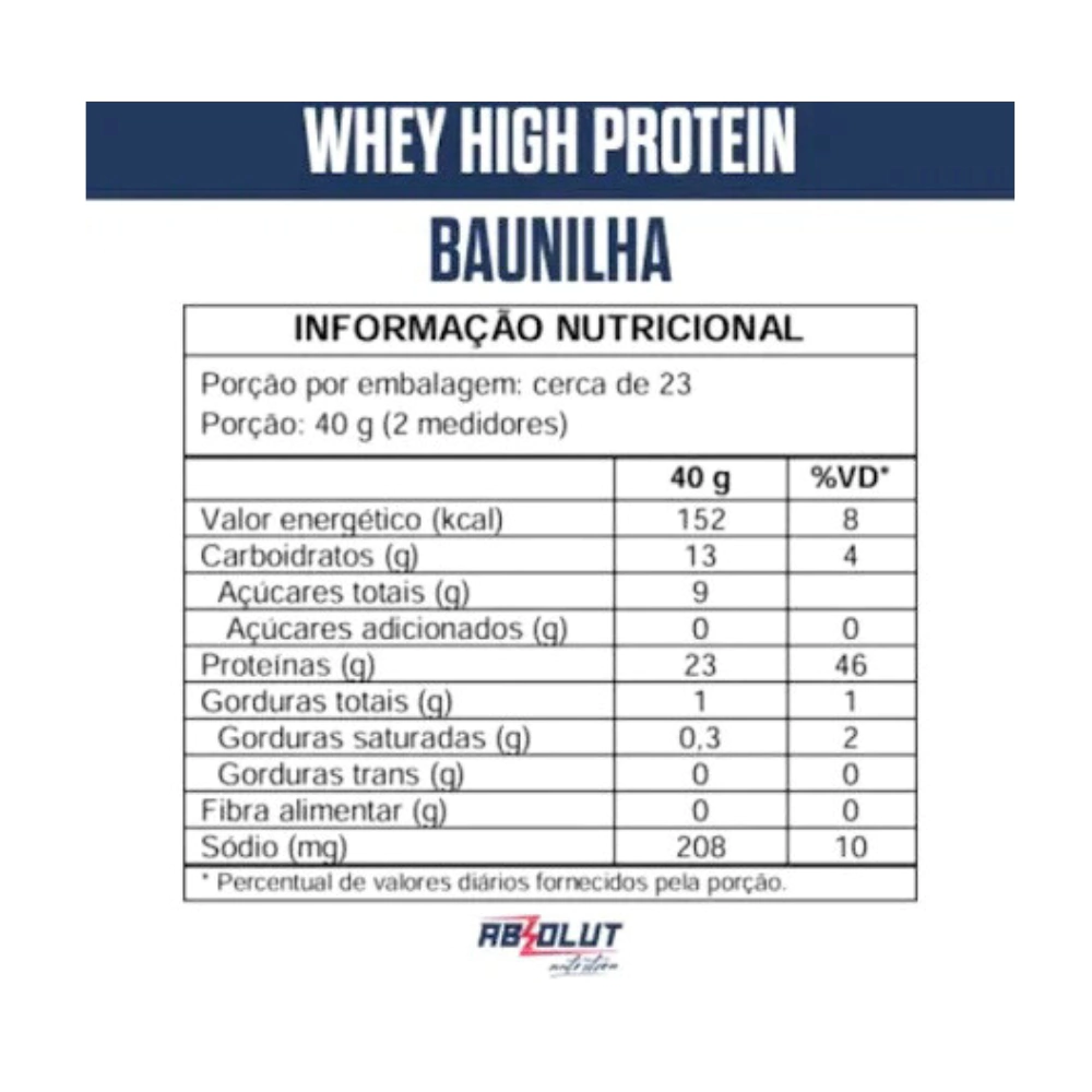 O Whey Concentrado High Protein baunilha Absolut 900g é um suplemento proteico que utiliza a proteína concentrada do soro do leite (WPC) como sua principal fonte, oferecendo um alto teor proteico por porção com um delicioso sabor de morango. É uma opção popular para quem busca auxiliar no ganho de massa muscular, na recuperação pós-treino e complementar a ingestão diária de proteínas.